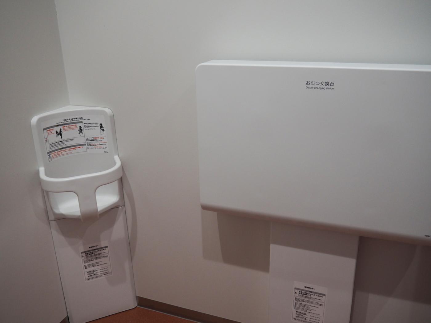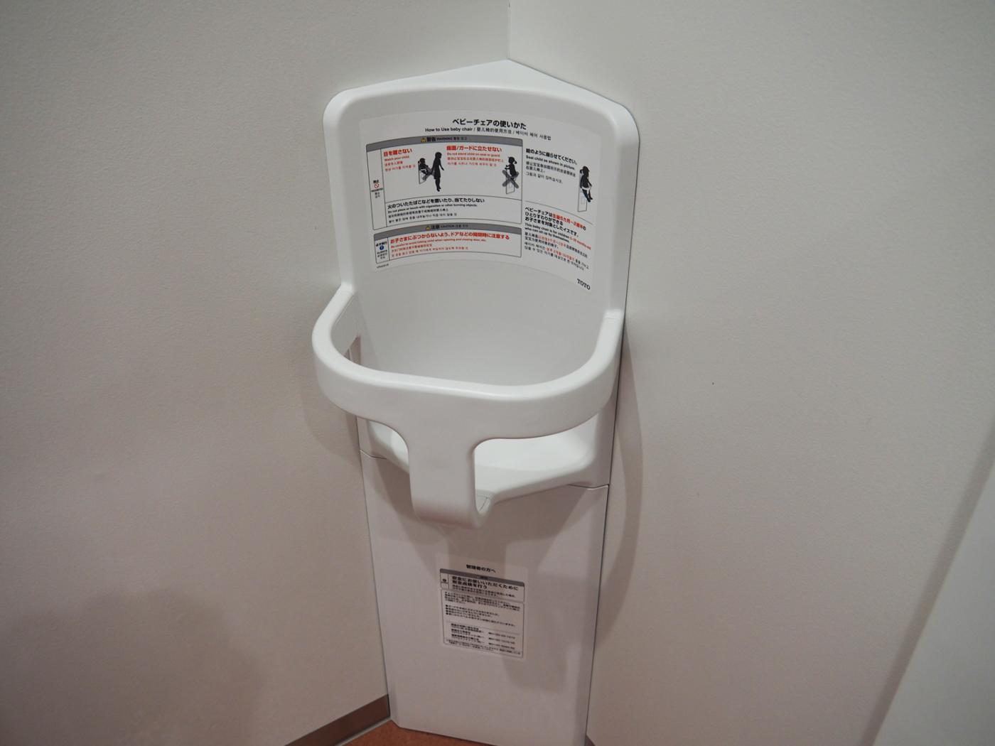ベビーチェアを各フロアのトイレに設置しています。